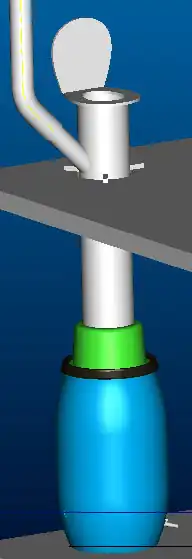 Picture of the installed toilet stool and ventilation pipe. Fan is installed inside the pipe just above the ceiling. -