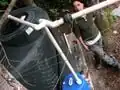 When building a rainwater catchment system, it is important to consider numerous concepts that are critical to making a system work. Some of these include: installing a first flush system to divert the first 10 minutes of rainwater to prevent contamination by birds, dust and industry (Mollison, 166); constructing an overflow valve for excess rainwater (Mother); and selecting a closed container for storing water. We are not discussing aspects regarding roof and gutters because they are already installed, but it is important to make sure that the gutters for the roof have been cleaned and cleared of debris.