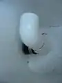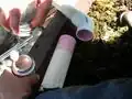 We measured a smaller hole and drilled into the side of the 15 gallon first flush tank. To get the plastic threaded tube inside the tank without losing it, we used a string, washer, magnet and a telescoping magnet pen to thread this piece through the tank into the opening we drilled. We placed a nut and gasket on either end of the threaded tube. Once we got the threaded tube through the hole and in the correct position, we tightened the nut/gasket with channel locks then used silicon to seal the opening and make it water-proof. At this point, we attached the plastic threaded gate valve to the threaded tube. These components make up the slow-release drip valve that will gradually let water out of the first flush system. At the top of the first flush tank, we reduced the opening to allow for PVC connection. Our primary design for the diversion of the first flush allowed some of the wash water to pass into the main storage tank. We rectified this by redesigning the T-junction (see pictures below).