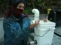 We tested our rainwater catchment system by placing a running hose into the gutters attached to the roof. We discovered that the water flows from the gutters to the first flush tank, but due to the high flow from the hose (which could easily be replicated by a storm) some water ran past the first flush tank into the main storage tank. We redesigned the diversion configuration to rectify this problem. The only other issue that can easily be fixed is that some of the water running into the sediment extraction bucket shoots past the bucket onto the roof. We fixed this problem by adjusting the bucket's placement on the roof.