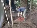 Before we built the frame for the concrete slab, we cleared out the area for the main storage tank to sit. This involved cutting small trees and shrubs, leveling the earth, digging out small and large roots, and moving rock to this site.