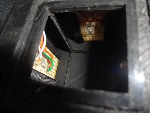 When putting in the box, cut 3 PCBs the size of 200x350mm and solder each LED on a PCB with the encoder sensor looking at it (so each PCB will have a LED and a reference encoder). The final third encoder sensor goes on a PCB of its own. The following images show the layout inside the box: