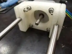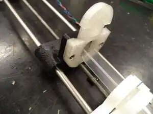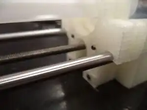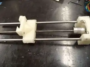 Slide the carriage onto the threaded rod and make sure the two metal rods fit into the linear bearings