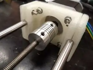 Insert the threaded rod into the coupler halfway, the other half should be on the motor, secure it.