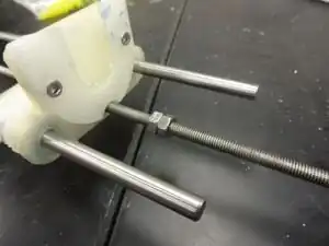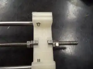 M5 nutes mounted on threaded rod.]] After the carriage is midway down the threaded rod, thread two M5 nuts onto the threaded rod.