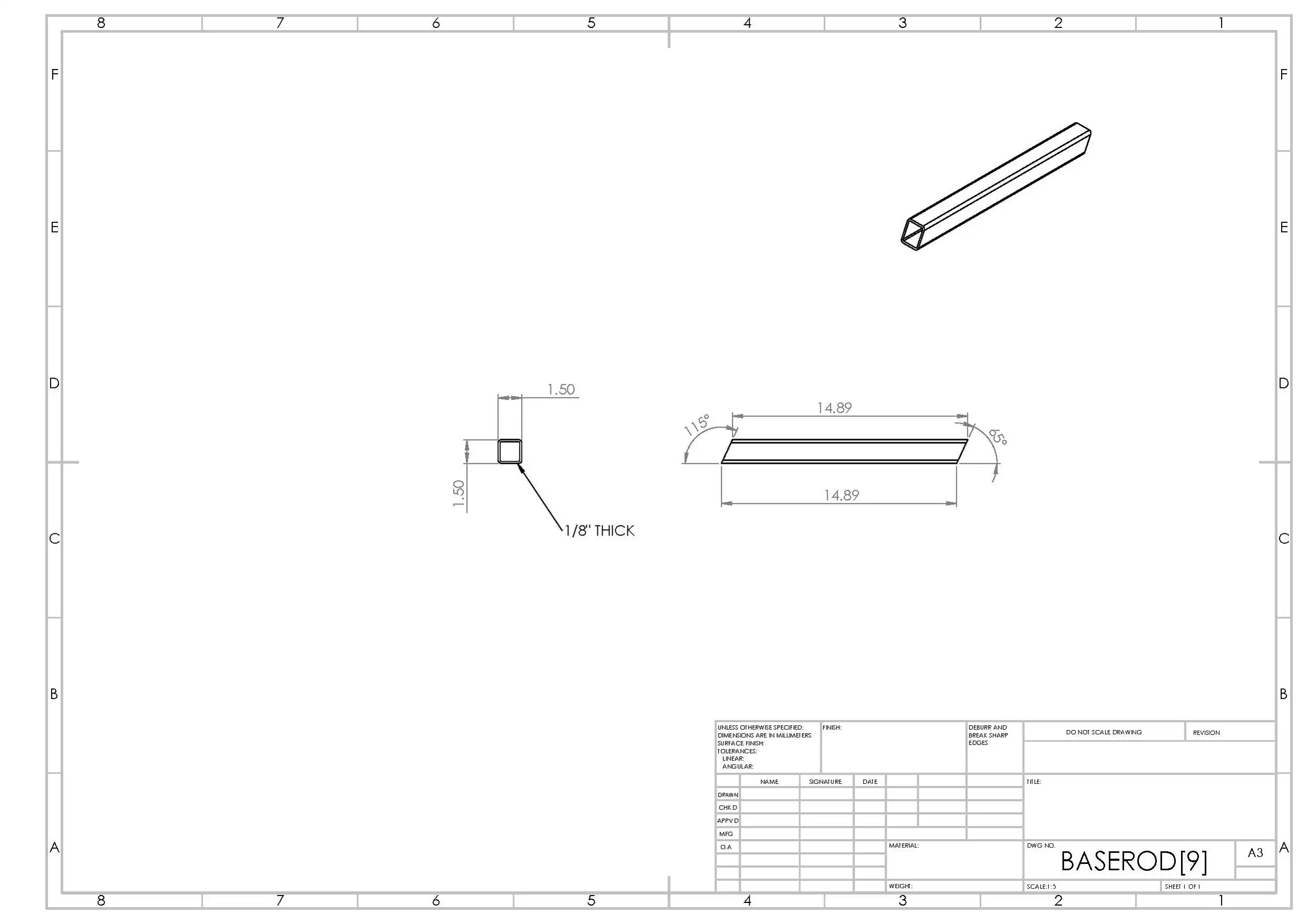 -Drilling: Make sure to use a smaller bit first to make a pilot hole, then drill out with a 9/16 in bit for the square stock holes and a 1/2 in bit for the angle stock holes. Adding cutting oil or motor oil can help this process go more smoothly.