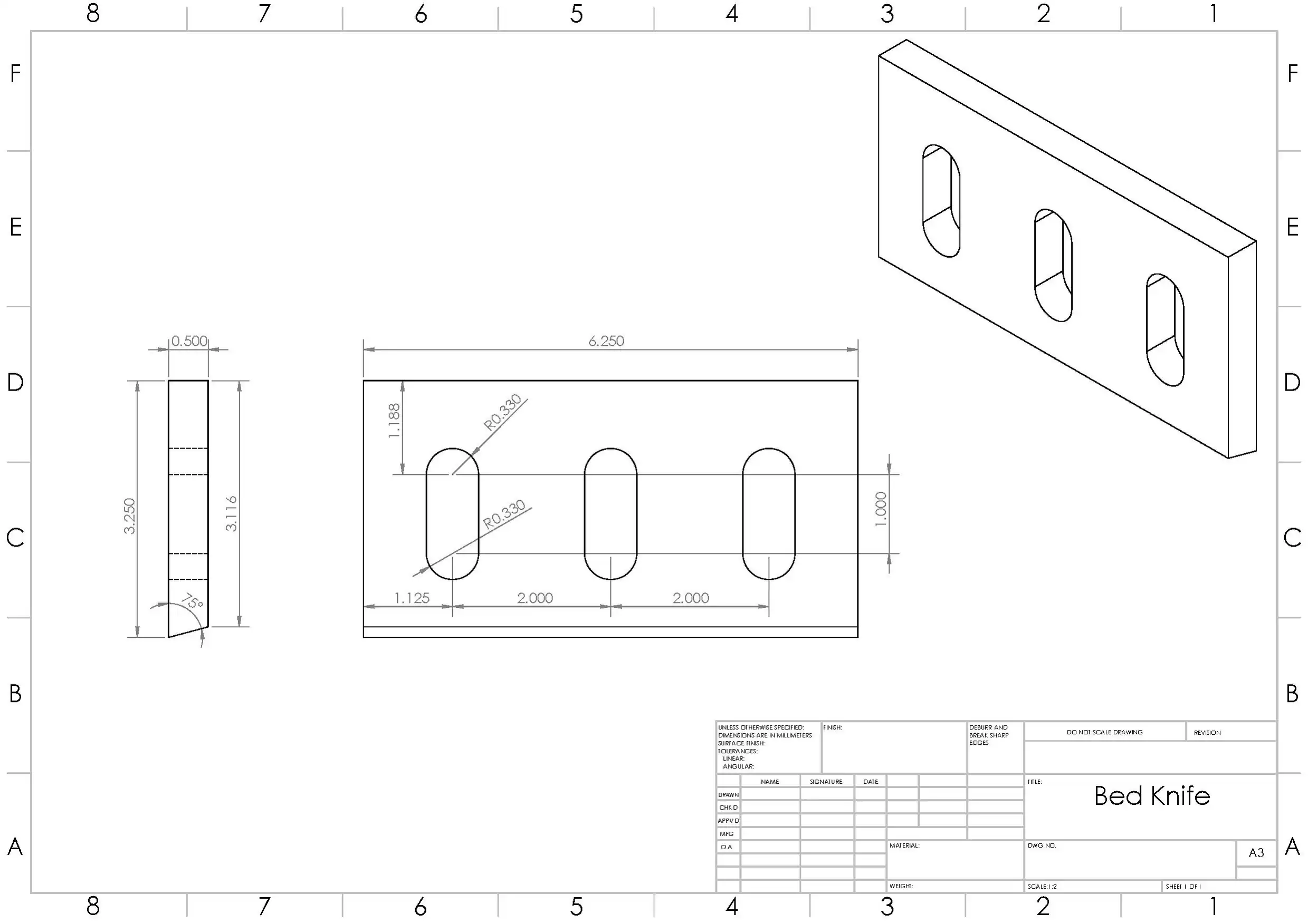 These were made from a 1/8" 1.5" square tubing - The bed knife is what the rotary blades use as a cutting edge. There is only one bed knife needed to manufacture one granulator.