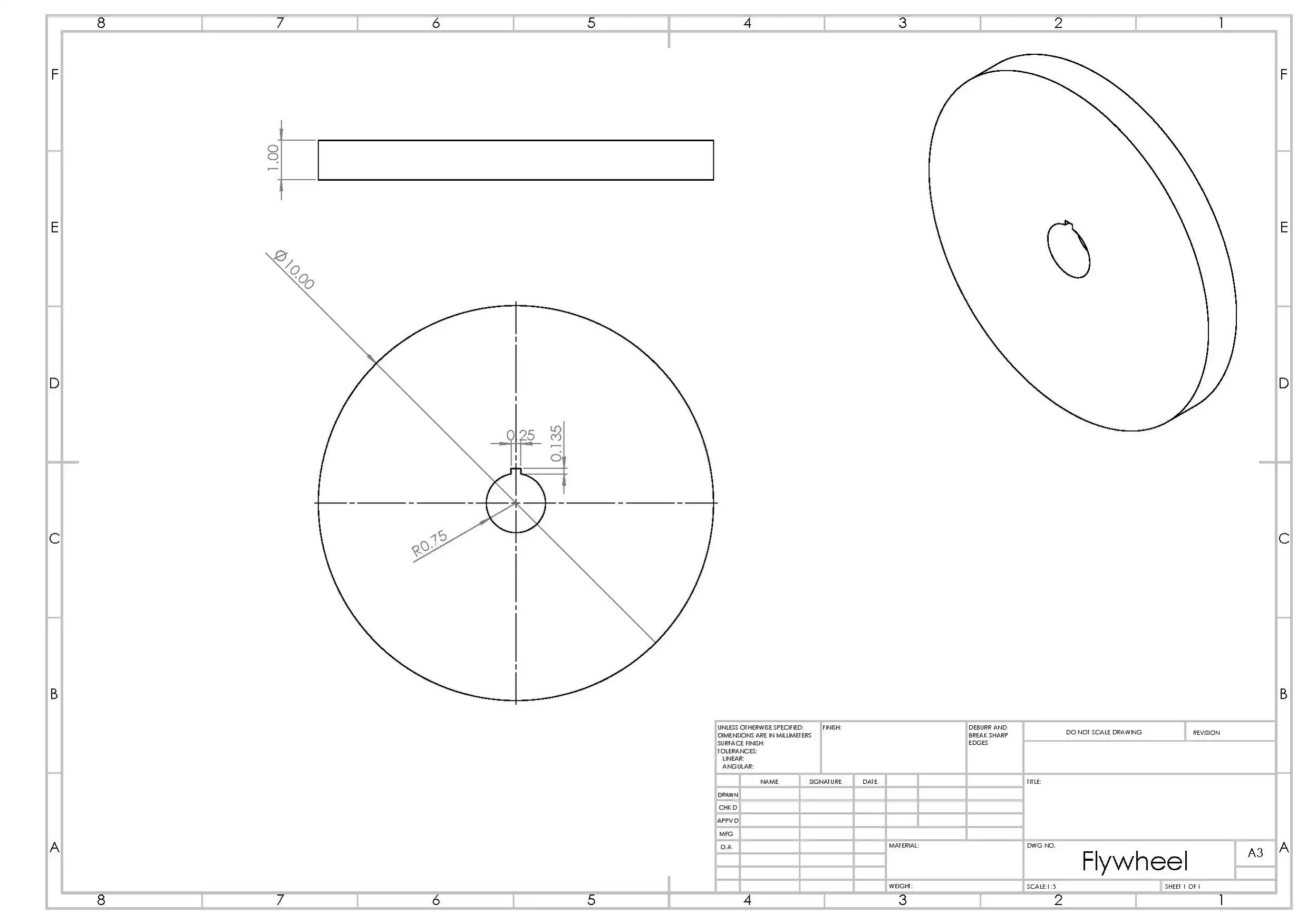 - The bearing and flywheel can be assembled by bolting the bearings into the respective holes on the side plates. Then the bearings can be tightened down to the shaft to lock it in place. Then the flywheel can be attached using the key way on the shaft.