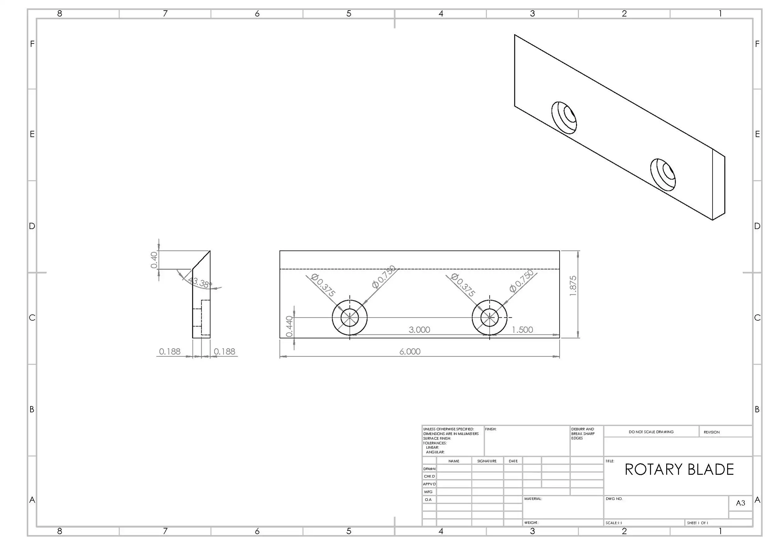 This was made from a 3/8" steel sheet. - The rotary blades are the blades that spin around on the shaft to shred the plastic. There are three rotary blades needed to manufacture one granulator.