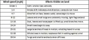 In order to benefit from the energy generating potential of wind turbines, it is important to understand how much wind is available at a given location. A Beaufort scale provides an indication of wind speeds based on various visual clues. While these clues offer indications of the wind speed on the ground, there is likely a greater amount of energy in the wind as the altitude increases. This is based on the boundary layer that develops on the Earth's surface, along with various obstructions on the ground that affect the flow of the wind. The Beaufort scale is provided below:[5]