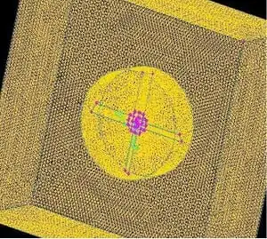 A computational fluid dynamic (CFD) analysis was intended for this blade angle to investigate the pressure distribution and airflow as it passes the blades. Unfortunately, the license for the CFD software, Fluent, has expired. The meshed model of the blade design, using the program Gambit, has been included below.