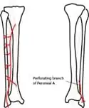 The peroneal artery flap is a Type B fasciocutaneous flap based on the lateral leg over the fibula extending from the head of the fibula to the lateral malleolus. This flap can measure approximately 10 x 20 cm. Septocutaneous perforators of the peroneal artery supply its blood. The pedicle is 3 cm long and has a diameter of 0.5 mm. It can be used for coverage of defects of the middle and lower third of the leg. The superficial peroneal nerve may be included with a segment of fibula.