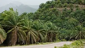 The Indonesian islands of Sumatra and Borneo are full of lush rainforests and are home to a variety of species. As common of many of Earth's pristine forest lands, they are highly susceptible to deforestation which threatens all life in those areas. One of the major problems of Indonesia specifically is the practice of using land to create palm oil plantations. "Of approximately 11 million hectares of oil palm plantations globally, about 6 million hectares are found in Indonesia"[3] (1 Hectare = approx. 2.5 acres).[4]