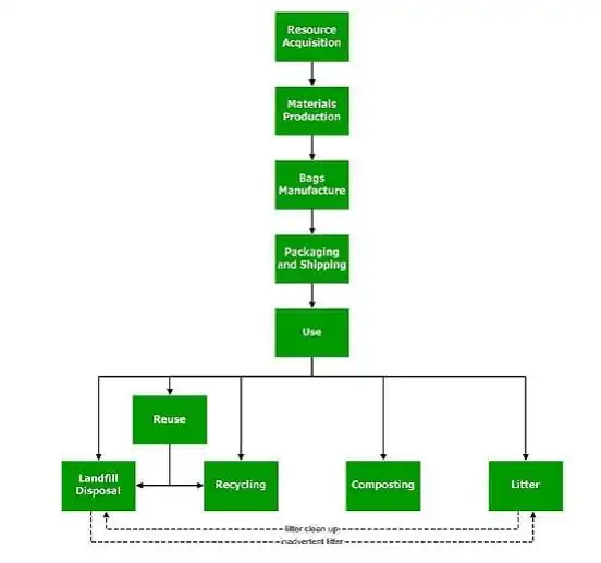 There have been many LCA's performed comparing paper and plastic bags. This web page contains a summary and critique of the some of these LCA's. Each LCA contains assumptions made to perform the analysis and an extensive review of the processes that are performed during the life of each bag. Links to the documents reviewed are available if more information is desired. The following sections summarize the information within the many LCA documents reviewed with regards to paper and plastic bags. The majority of papers compared the use of polyethylene bags, as they are the most common plastic bags. Some reports included plastic bags of many different plastics. The paper bags analyzed were either white or brown paper bags. Most of the papers reviewed result in the same conclusion, although values may differ according to the comparison methods used. Figure 2 indicates the steps taken to analyze the life cycle of disposable bags.