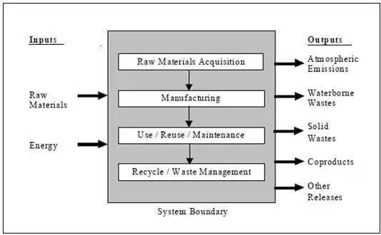 - ↑ 1.0 1.1 US Environmental Protection Agency (EPA) (1993). Life Cycle Assessment Research, LCA 101. <http://web.archive.org/web/20120102074642/http://www.epa.gov:80/NRMRL/lcaccess/lca101.html>. 04/15/10.
