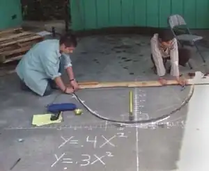 Using that curve, we shaped the blackberry vines to fit that parabola and tied string from one side of the curved blackberry vine to the other in order to restrain the parabolic shape.