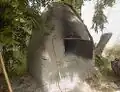 - It is a home built directly into the cliff near a river bed. It appears to be constructed of nothing more than the dirt around it and some recycled materials.