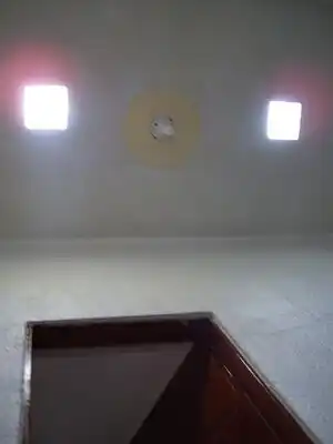- Description: This is a picture of two small skylights used to light a windowless hallway. They function as two bright lights would throughout the day and don't allow much of the sun's heat in through the thick glass.