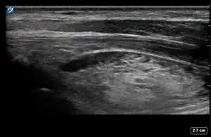 | 4 | Probe is set to the proper depth of 4 cm when evaluating the pronator quadratus muscle. | ![]() |