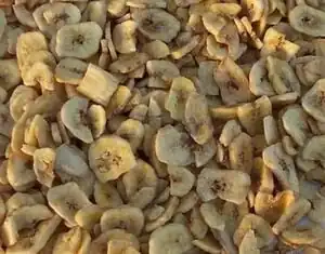 Banana chips are crispy snack food similar to potato chips. Most producers use plantains rather than desert bananas. Chips are normally made from under ripe fruits by frying the slices in oil.