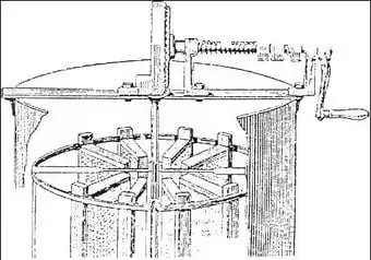 | Movable frames can be spun in a radial or tangential extractor. Both of these can be adapted to take comb from the top bar hives by making wire mesh cages that sit where the frames normally would A third option (not shown) is for flat, round mesh trays that stack inside the cylinder. |