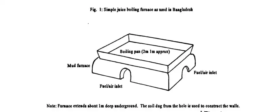 In most cases this sugar is produced using open pan boiling techniques, either in a single open pan (see figure 1) or in a series of pans (figure 2) that are located above a furnace.