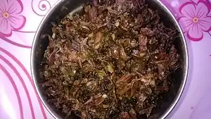 Gundruk is particularly popular in Nepal. The annual production of gundruk in Nepal is estimated at 2,000 tons and most of the production is carried out at the household level. Gundruk is obtained from the fermentation of leafy vegetables in Nepal. It is served as a side dish with the main meal and is also used as an appetiser. Gundruk is an important source of minerals particularly during the off-season when the diet consists of mostly starchy tubers and maize which tend to be low in minerals