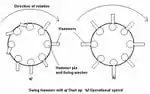 This type of mill consists of a large diameter, short length cylinder fitted with lifting bars. The cylinder is fed with a coarse feedstock of up to 250mm in size and in rotating the feedstock is lifted and then allowed to drop through a significant height. Three significant mechanisms cause the breakdown of the mineral; impact due to the fall of the mineral onto the charge below causes a reduction in the size of the feedstock; attrition of smaller particles between larger grinding bodies; abrasion or rubbing off of particles from the larger bodies. Steel or ceramic balls are often added to aid with the reduction process (the mill is then referred to as