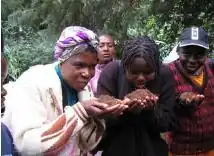 Figure 3: Inspecting mixed compost. support and cultural acceptance urine diversion
