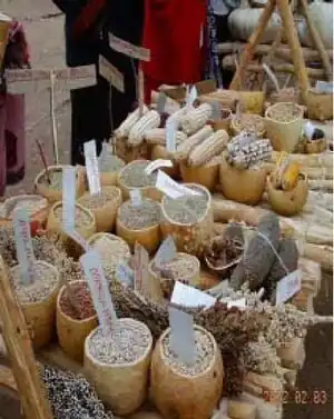 Figure 1. Vilage exhibitions at a Seed Fair in Gwanda District, Zimbabwe. The seed can be displayed in transparent bags for easy viewing.