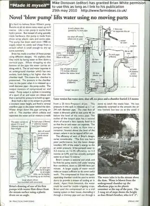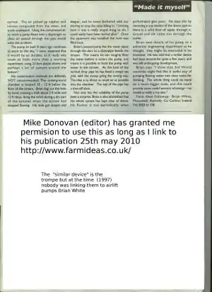 Mike Donevan of practical farm ideas has allowed me to use pictures and text from when the pump was in his magazine in exchange for a link. http://www.farmideas.co.uk/
