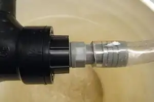 - The 3/4" tubing should fit tightly over the 3/4" connector. It can be further held in place by tightening a metal clamp around it.