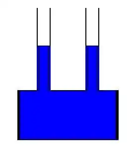 With multiple tubes in the same liquid, the maximum height of the liquid in each tube is given by conservation of mass. Using the same principle as a manometer, the external pressure, density, and diameter of the tube determine the height of the liquid. This means that the density, ρ, times the cross sectional area of the tube, A, times the height of the fluid, h, is the same for each tube when they exit to the same pressure, as shown in the diagram to the right. This means that if a closed container is full of water with two of the same straws at the top that are open to the air, the liquid in the straws will rise to the same height, i.e. there will not be more liquid in one straw than the other.