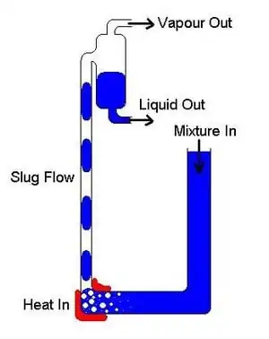 The full determination of the fluid properties during slug flow and derivation of a model including the full effects of this flow regime are beyond the scope of this model. Instead, a much simpler model is considered, assuming completely vertical tubes and steady flow, etc. as discussed further below.