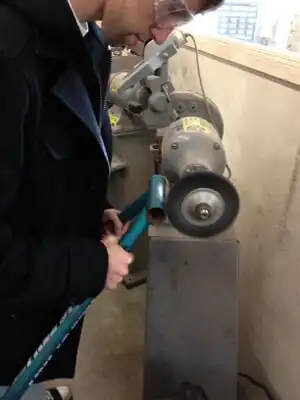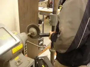 Prepare the front supports for welding. Front supports came from the front handle bar support bracket of the scrap bicycle.