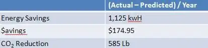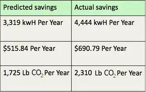- RCEA reported an annual energy savings of 3,319 kwH/Year (predicted).