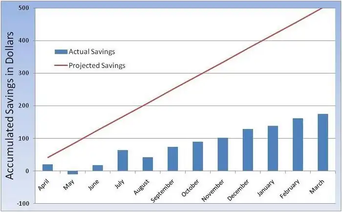 The actual annual savings were $174.86, which averages to $14.57 per month.