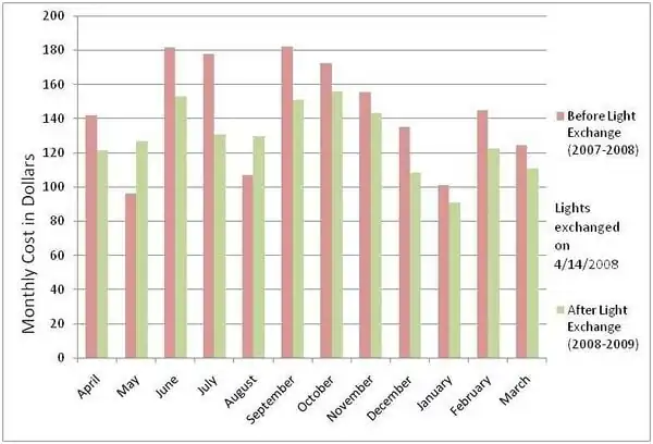 - In summary, this lighting retrofit was a successful business interaction as represented through the personal interview with Dr. Benoit. Even though the projected energy savings were higher than the actual, there was still energy saved with the retrofits (shown in Figure 2). There could be several reasons for the overestimated savings, such as increased energy cost for the second year. The price of energy increased between the first year and the second. The average cost of the year preceding the retrofit was about 0.1685 dollars per KwH, where the year after was about 0.1727 dollars per KwH. This price change is only responsible for being about 44 dollars under the projected savings. Other reasons are not clear as to why the projected savings were not made.