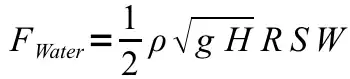 Where Fwater is the force acting on the gutter due to the rain falling on the roof area, g is the gravity constant, H is the rise of the roof, R is the max rainfall (usually needs to be converted to m/s from mm/hr), S is the span of the roof and W is the width of the roof.