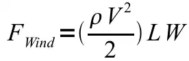 Where FWind is the force acting on the gutter due to the wind, ρ is the density of air, V is max wind speed, L is the exposed gutter edge length and W is the width of the roof.