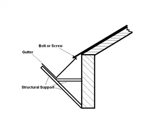 Rain gutters are installed on buildings to catch rain water and direct it to a specific location. The most critical use of this water is for potable rain water catchment systems. Downstream of gutter systems will not be addressed here but should be addressed before any captured water is to be consumed. This project arose from a problem that was identified in gutter catchment systems being used in Uganda. Here it was found that the NGO's installed western style rain gutters that structurally failed in the first rainy season and western style replacement parts were not available. This greatly restricted the use of the bio-sand filters that they were being used in conjunction with. This page will suggest the factors that must be planned for as well as give suggestions to designs to be used.