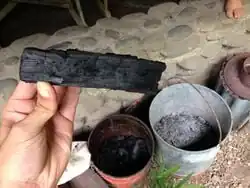 | This is what the biochar will look like after it is made. The biochar is inoculated with urine before it is added to soil. |