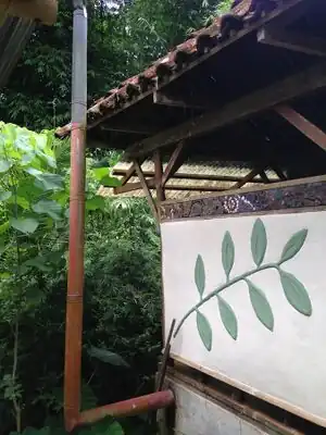 The composting toilets at Rancho Mastatal convert human waste into fertilizer for plants. It has two large compartments to store waste, and it uses sawdust produced either from the onsite workshop, or from another local sawdust resource. The frame of the structure was created using bamboo and timber connected with a mortise and tenon technique.