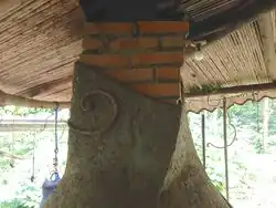 | This is the fuel shelf where the stove is fed with locally harvested fuel from a nearby mill. | |