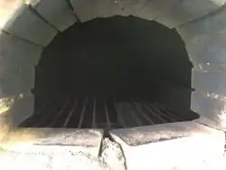 | This is the cooking shelf. A constant cross-sectional area is used throughout the oven - similar to a rocket stove. | |