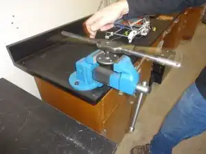 - (i.) Using a bench vice, clamp one floor flange with its right side facing upward.