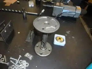 | Brass spacer (or 'bushing') | turned on a lathe: first OD = 1.25x0.25", second OD = 0.999x0.5"1 ¼" OD, inside = 0.5x0.75" ID, ¾" long | |