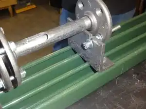 - (ii.) Insert a 1 ½" bolt into the open upper hole on the floor flange, from barrel side to bearing side. Repeat this with another 1 ½" bolt and the second open upper hole.