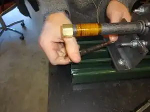 - (v.) Begin coiling tightly all of the nichrome wire around the heating tube: start the coil as close to the threads as possible while preventing any wire from slipping into the threads.