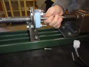 The purpose of determining where the feed screw "bottoms out" is to allow the feed screw to press back against the bearing, which should assume the pressure rather than the motor. (See Photo 28 and Photo 29)